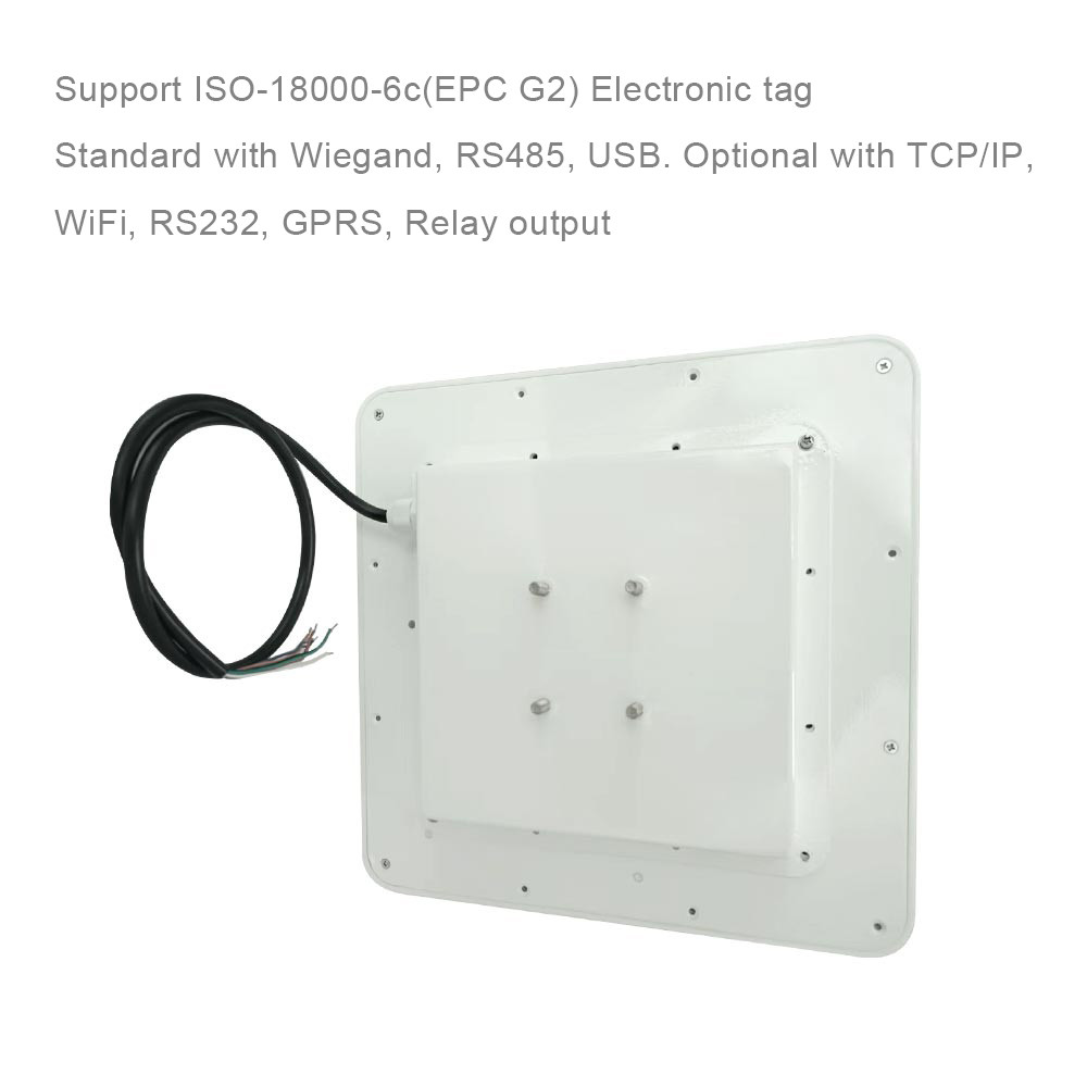 Deze UHFrfid-lezer kan binnen of (IP67-graad van bescherming) in openlucht worden gebruikt. Het heeft een maximumlezingsafstand van zelfs 6 meters waaier. Zijn het werk frequentie is standaard voor internationale 860~960MHZ. Het heeft lezing en het schrijven van SPAANDER UHF configureerbaar door software. Open protocol voor markeringen of de stickers van de lezings de bestaande UHFnabijheid op de markt. Signaalaanwinst: 0-30 dBm. Verbinding: RS-232/RS-485. Wiegand 26 beetjeoutput, USB, RJ45. WiFi, Relaisoutput. De werken met om het even welk toegangsbeheer op de markt (iedereen wie een Wiegand-protocol als lezersverbinding behandelt).